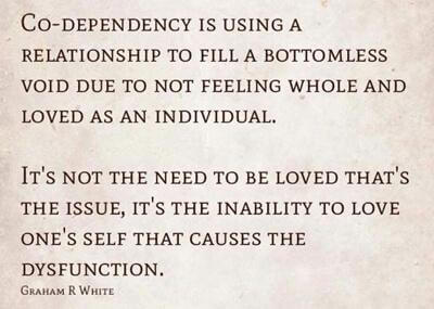 Perhaps you are in a codependent relationship, or have a track record of destructive, unhealthy, relationships?